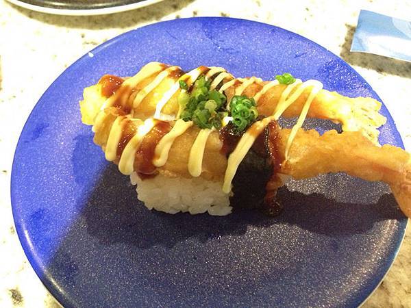 這盤炸蝦握壽司超好吃的,麵衣裡面真的吃的到蝦肉耶,而且還不小隻呢!上面灑的蔥花不是一般的蔥喔,而是比較貴的珠蔥!