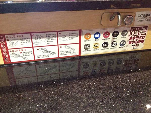 這邊壽司的價格是看盤子的,盤子的種類寫的清清楚楚的跟你說這盤多少錢,有沒有看到最貴的一盤要300元耶,當天我們也看到300元一盤的壽司,果然跟我猜的沒錯,就是【黑鮪魚】,一盤300元坦白說算正常價格