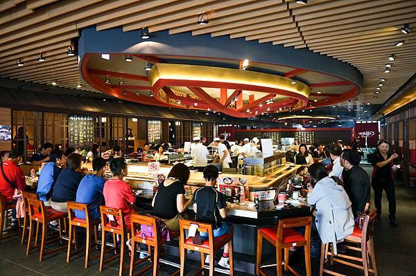 這就是迴轉壽司的主要用餐區了,人真的很多說,我喜歡天花板用木頭一條一條的設計感~~~很有層次
