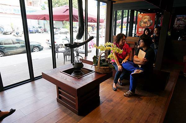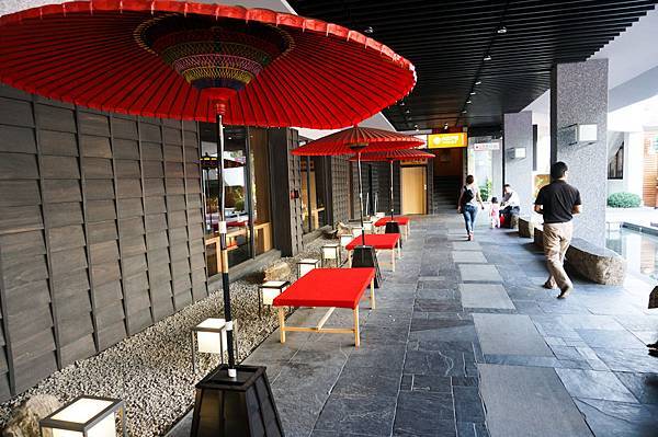 這個日式的紙傘是不是超有日本風味的~~~旁邊的紅色桌子是椅子讓客人等後用的,外觀的設計挺不賴的