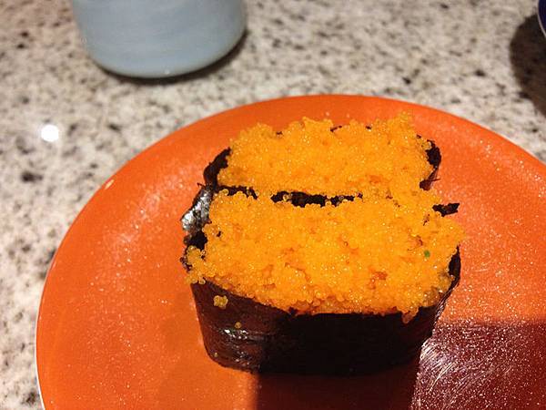 這盤蝦軟壽司,你看看蝦軟都多到快滿出來了,蝦卵脆脆的很美味,重點是這壽司的海苔還是脆的,而且海苔的香氣都還在,讚